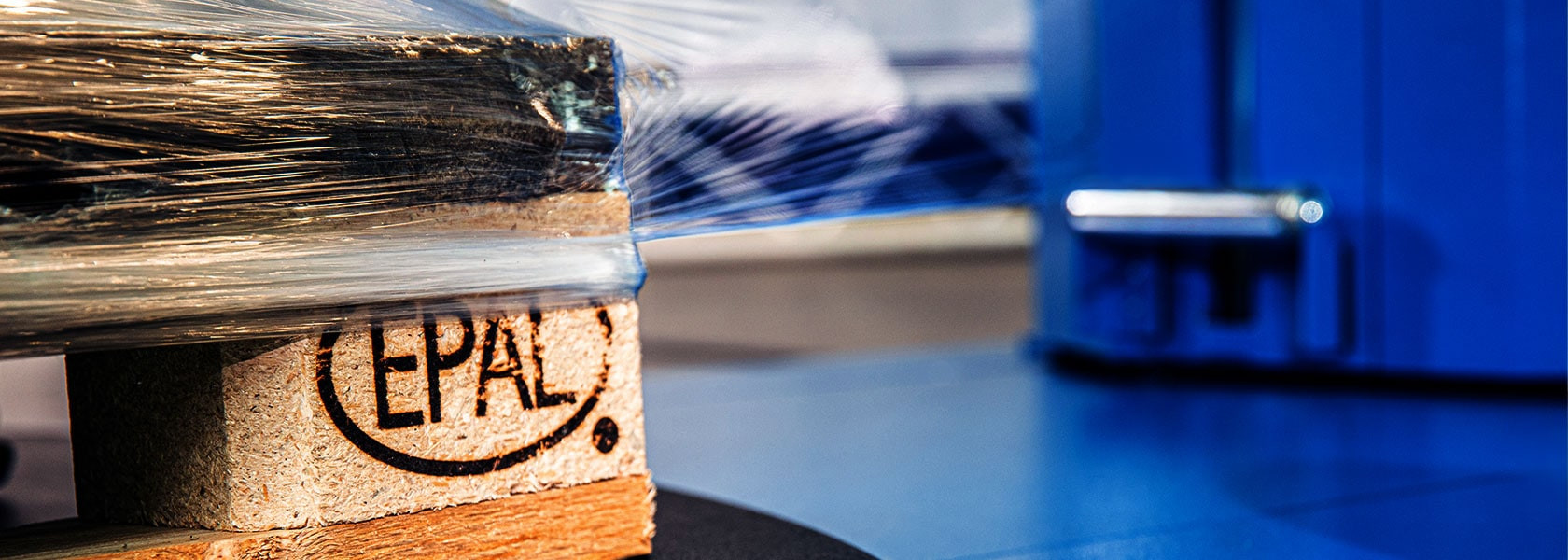 PSE 3500 als Transpallet (TP) Version mit offenem Drehteller, zum einfachen Be- und Entladen durch einen Handhubwagen. Unsere Transpallet-Option ist für alle PSE Maschinen geeignet. Die variable Position der Einfahrtaschen macht die Maschine flexibel einsetzbar. Sie ist platzsparend und für Standardpaletten bis max. 1.100 x 1.200 x 2.400 mm geeignet.